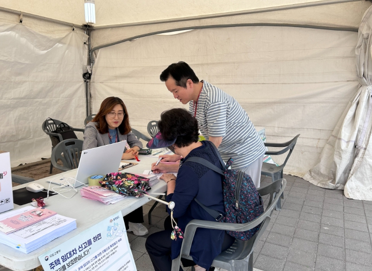시는 도민체전 방문객들에게 주택거래 시 유의사항을 안내하고, 전문상담사와의 1대 1 상담을 진행하고 있다.