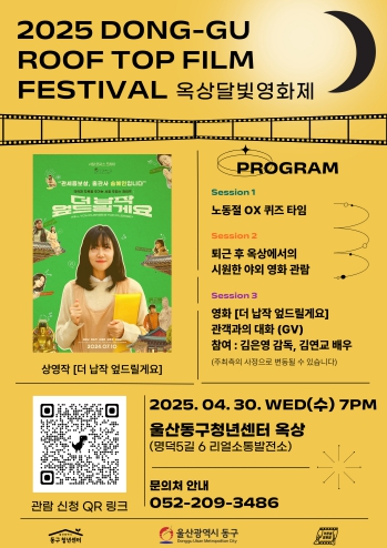 옥상달빛영화제에서는 울산 동구 출신인 김은영 감독의 영화 '더 납작 엎드릴게요'를 상영하고 노동절 퀴즈 및 관객과의 대화(Guest Visit) 등을 진행할 예정이다.