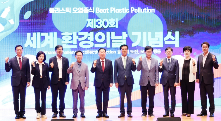 행사는 플라스틱 오염의 심각성을 알리는 주제 영상 상영을 시작으로, 환경상 및 환경보전 유공자 시상, 기념사 및 축사, 상징 퍼포먼스, 기념촬영 순으로 진행됐다.