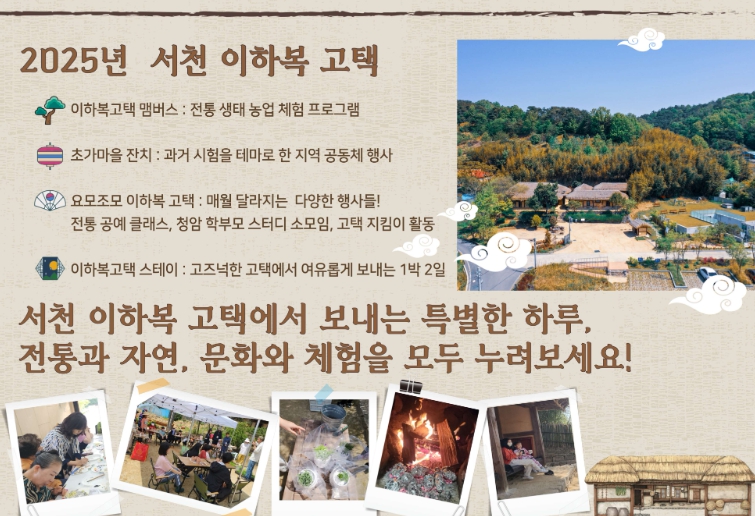 운영 프로그램은 ▲전통 농업 방식과 생태 교육을 결합한 ‘이하복고택 멤버스’, ▲지역 공동체가 함께하는 가을 축제 ‘초가마을잔치’, ▲고택 해설과 전통공예 원데이 클래스, ▲내‧외국인을 위한 1박 2일 숙박형 체험 등으로 구성되어 있다.