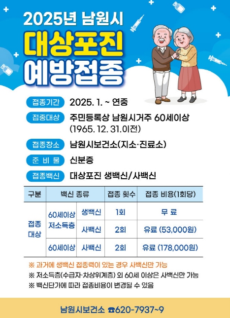 | ▲ 60세 이상 남원시민, 대상포진 예방접종하세요! |