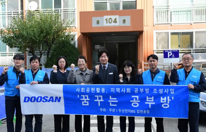 최영식 ㈜두산전자 김천공장장은 “지역사회와 함께 성장하기 위해서는 아이들의 미래를 밝히는 일이 무엇보다 중요하다.”라며, “앞으로도 김천시와 협력해 교육 취약계층을 위한 지속 가능한 사회공헌 활동을 이어가며 아이들이 희망을 잃지 않고 건강한 사회 구성원으로 성장할 수 있도록 지원하겠다.”라고 말했다.