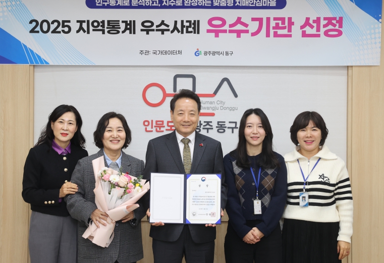 [무한뉴스=정민정 기자] 광주 동구는 국가데이터처가 주관하는 ‘2025년 지역통계 우수사례 공모전’ 전국 본선 심사에서 ‘인구통계로 분석하고 지수로 완성하는 맞춤형 치매안심마을’ 사례로 우수기관에 선정됐다고 밝혔다.