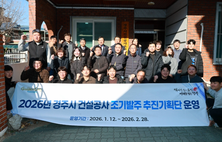 [무한뉴스=최진수 기자] 경주시가 지역 건설경기 활성화와 사회기반시설의 조속한 확충을 위해 ‘2026년 건설사업 조기발주 추진기획단’을 운영하며, 상반기 전체 건설공사의 70% 이상 발주를 목표로 행정력을 집중하고 있다.