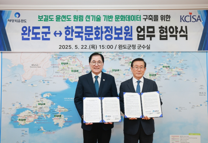 [무한뉴스=정민정 기자] 완도군은 지난 22일 한국문화정보원(원장 정운현)과 ‘2025년 신기술 기반 문화 데이터 구축 사업’에 대한 업무 협약을 체결했다.