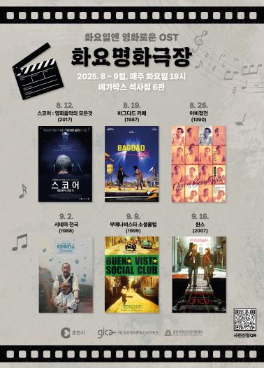 ‘춘천씨네파크’의 일환으로 진행되는 2025 화요명화극장은 주옥같은 추억의 OST 명작들로 구성되며, 세대를 아우르는 명작 영화 상영으로 시민들의 영화예술 저변을 확대하기 위한 행사이다.