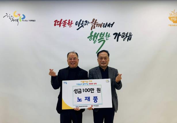 [무한뉴스=정승훈 기자] 가평군 가평읍 지역사회보장협의체(지사협) 노재풍 위원장은 2일 행정복지센터를 방문해 ‘2025년 가평군사회복지대상’ 수상을 통해 받은 시상금 중 100만 원을 이웃돕기 성금으로 기탁했다.
