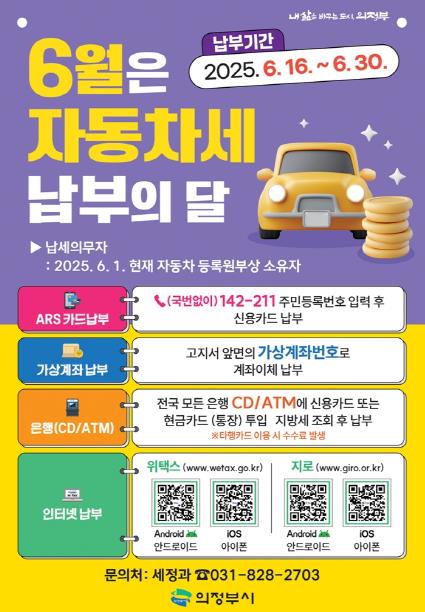 | ▲ 의정부시, 6월은 자동차세 납부의 달 |