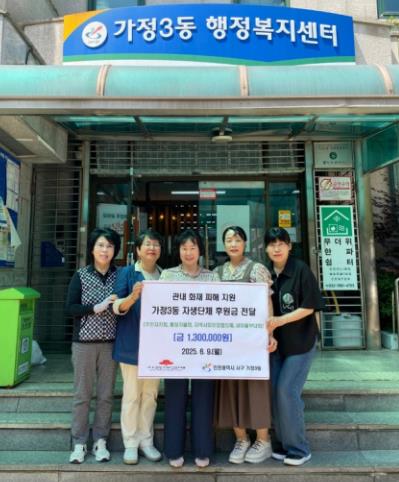 [무한뉴스=정승훈 기자] 인천 서구 가정3동 행정복지센터는 관내 자생단체들이 지난 3월 발생한 빌라 화재 피해 주민들을 돕기 위해 자발적으로 모금한 후원금 130만 원을 전달했다고 10일 밝혔다.