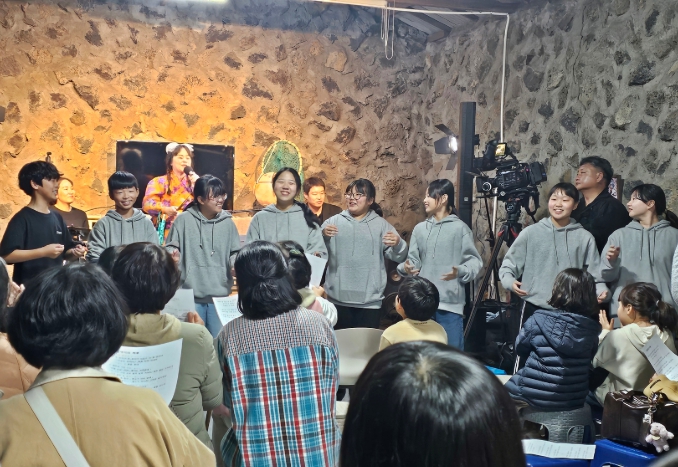 [무한뉴스=정승훈 기자] 제주도교육청 수산초등학교는 23일 6학년 학생들이 마을 소통공간 ‘공간믈미’에서 학교와 마을이 함께 준비한 낭독극 ‘우린 영 살아쩌’를 공연했다고 밝혔다.
