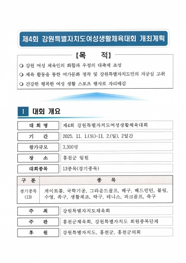 | ▲ 강원특별자치도여성 생활체육대회 개최 및 세부추진계획 |