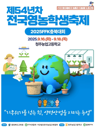 [무한뉴스=정민정 기자] 충청북도교육청은 오는 16일부터 18일까지 2박 3일간 청주농업고등학교에서 '제54년차 전국영농학생축제(2025 FFK 충북대회)'를 개최한다고 밝혔다.