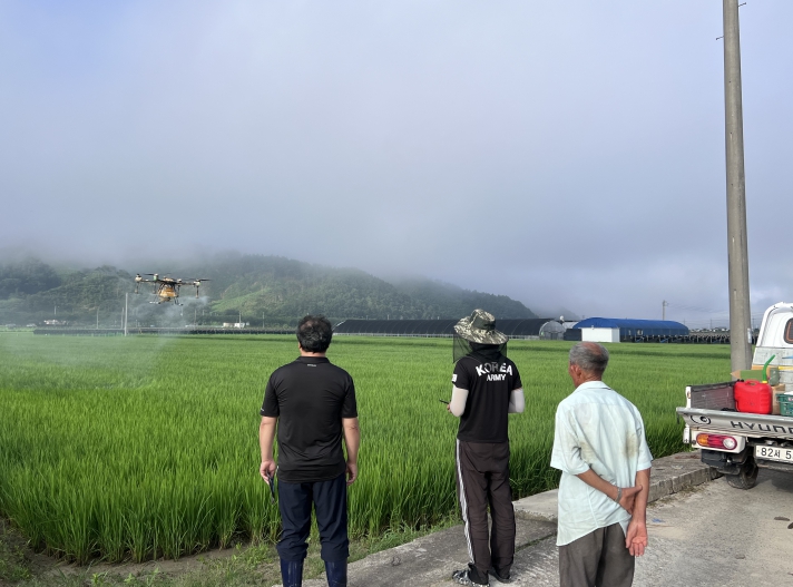 드론 방제는 대규모 면적에 단기간 방제를 진행하는 방식으로 진행돼 도열병, 잎집무늬마름병, 깨씨무늬병, 이화명나방, 혹명나방, 멸구류 등의 병해충 피해 최소화는 물론 방제 노동력을 절감할 수 있어 농가 경영비에도 도움이 되는 장점이 있다.