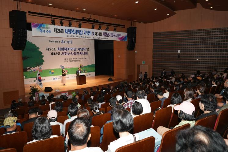[무한뉴스=정민정 기자] 서천군은 지난 10일 장항읍 기벌포 복합문화센터에서 '제26회 사회복지의 날 기념식'과 '제18회 서천군 사회복지대회'를 개최했다.