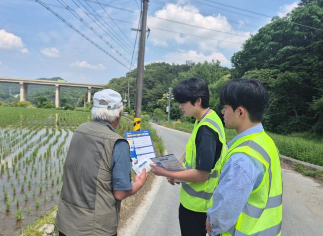 ▲ 유성구청 직원이 주민들에게 개발제한구역 불법행위 안내문을 배부하며 설명하고 있다.