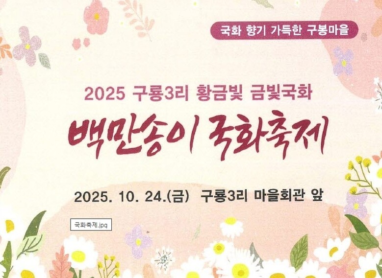 한양수 구룡3리 이장은 “올해는 국화 전시에 더해 지역 예술인들의 공연까지 준비했다”며 “마을 주민들이 직접 가꾼 국화의 아름다움을 많은 방문객과 지역민들이 함께 즐기고, 자연 속에서 여유로운 시간을 만끽하길 바란다”고 말했다.