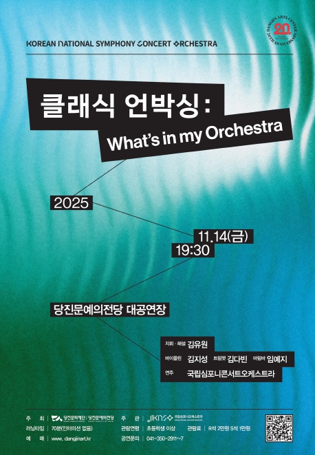 [무한뉴스=정민정 기자] (재)당진문화재단·당진문예의전당(대표이사 이원철)은 오는 11월 14일 금요일 오후 7시 30분, 당진문예의전당 대공연장에서 국립심포니콘서트오케스트라(이하 KNCO) 초청 공연‘클래식 언박싱 : What’s in my Orchestra’를 선보인다.