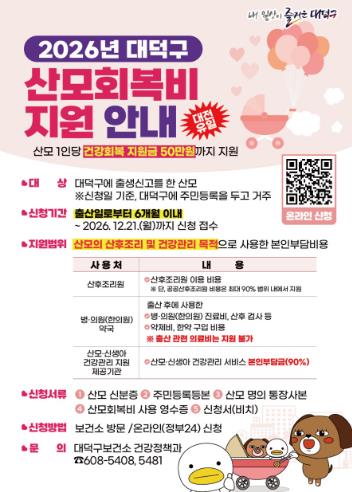 | ▲ 대전 대덕구 2026년 산모회복비 지원 안내 카드뉴스 |