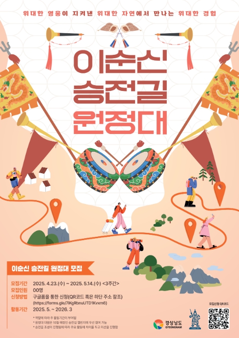 [무한뉴스=최진수 기자] 경상남도는 ‘이순신 승전길’의 성공적인 운영과 홍보를 위해 4월 23일부터 5월 14일까지 3주간 ‘이순신 승전길 원정대’를 모집한다고 밝혔다.