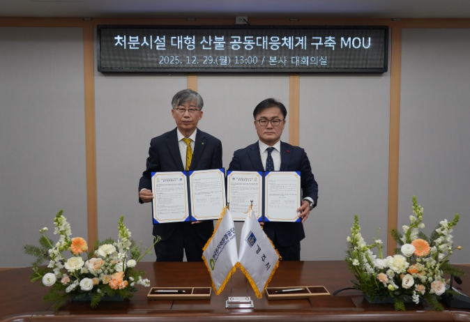 [무한뉴스=최진수 기자] 경주시는 지난 29일 한국원자력환경공단과 산불 발생 시 신속하고 체계적인 대응을 위한 ‘산불 공동대응체계 구축 업무협약(MOU)’을 체결했다.