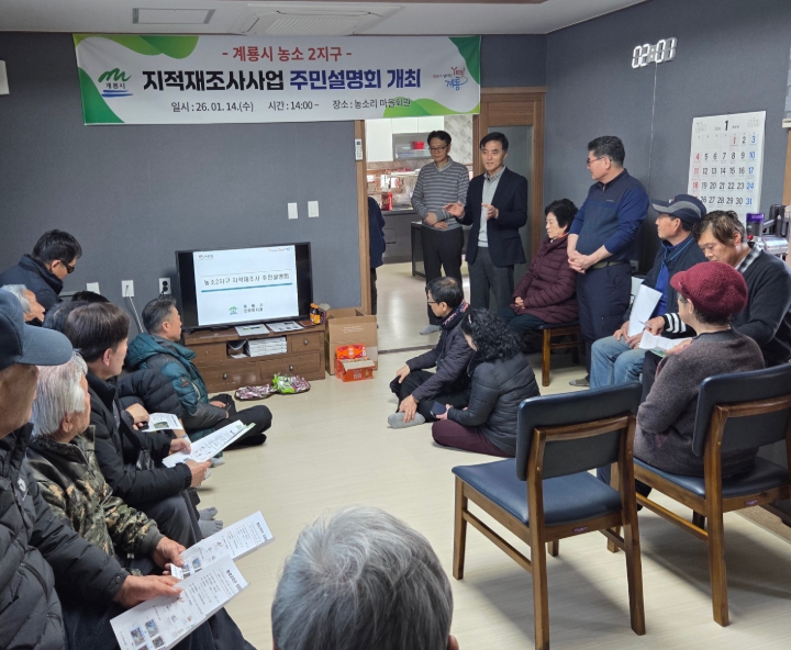 [무한뉴스=정민정 기자] 충남 계룡시는 2026년도 지적재조사사업 실시계획에 따른 사업지구 지정을 위해 지난 14일과 16일 농소2지구와 광석2지구 토지소유자 및 이해 관계인들을 대상으로 주민설명회를 개최했다.
