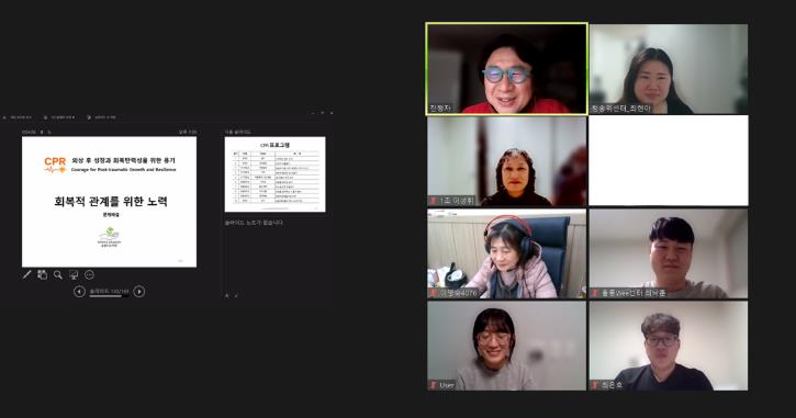 참여자들은 CPR(외상 후 성장과 회복탄력성을 위한 용기) 프로그램을 직접 구성하고 운영하는 방법을 배우며, 학교 현장에서 활용할 수 있는 상담 전략을 체계적으로 익히는 시간을 가졌다.