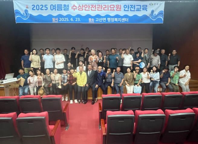 지난 23일 완주군은 고산면 행정복지센터에서 2025년 여름철 물놀이 관리·위험 구역에 배치될 안전관리요원 44명과 완주 소방서에서 운영하는 119 수상 시민구조대 12명을 대상으로 교육을 진행했다.