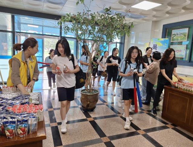 참석자들은 등교하는 학생에게 김밥과 음료 등 아침 간편식을 나눠주며 아침밥의 중요성과 효과를 홍보했다.
