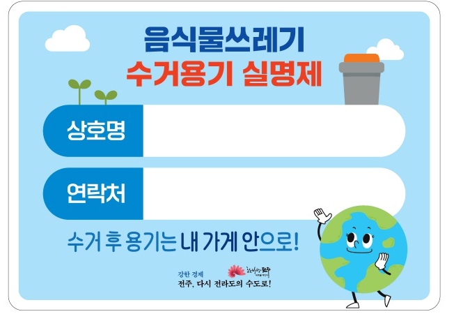시는 제도의 원활한 정착을 위해 (사)한국외식업중앙회 완산·덕진구지부, 지역 상가번영회 등과 협력해 회원사에 실명제 안내 및 스티커 배부를 진행하는 한편, 영업신고 및 수거용기 판매 시에도 제도 안내를 병행해 제도의 현장 정착을 유도할 방침이다.