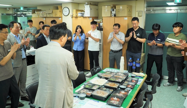 | ▲ 윤병태 시장이 업무에 지친 공직자 사기 진작을 위해 간식 제공과 간담회를 진행했다. |