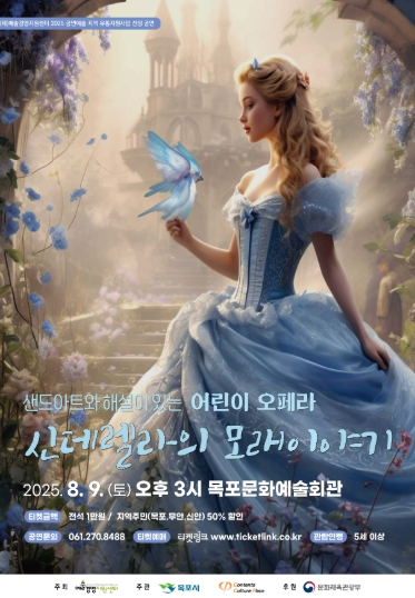 [무한뉴스=정민정 기자] 목포시 문화예술회관은 오는 8월 9일 오후 3시, 기획공연 '샌드아트와 해설이 있는 가족 오페라 ‘신데렐라의 모래이야기’'를 선보인다.