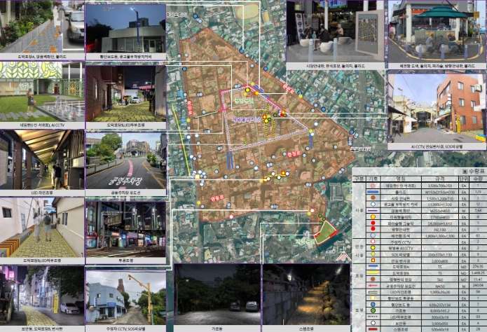 주요 사업 내용은 ▲매일올레시장 일대 보행로 정비 및 도로환경 개선 ▲가로등‧보안등‧경관조명 등 설치를 통한 ‘밝고 안전한 거리환경 조성’ ▲AI기반 지능형 방범CCTV 및 비상벨 등 스마트 방범시설 확충 ▲중앙공원 내 바닥분수 및 출입구 개선 등 생활안심디자인 적용 공간 조성 등이다.