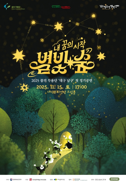 [무한뉴스=최진수 기자] 대구 남구청소년창작센터는 오는 11월 15일 17시 대덕문화전당 드림홀에서 꿈의 무용단 '대구 남구'의 첫 정기공연 ‘내 꿈의 시작, 별빛 숲’을 개최한다고 밝혔다.