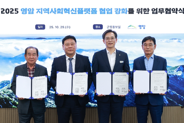 [무한뉴스=정민정 기자] 영암군이 29일 군청에서 ‘2025 영암 지역사회 혁신플랫폼 협업 강화 업무협약’을 체결했다.