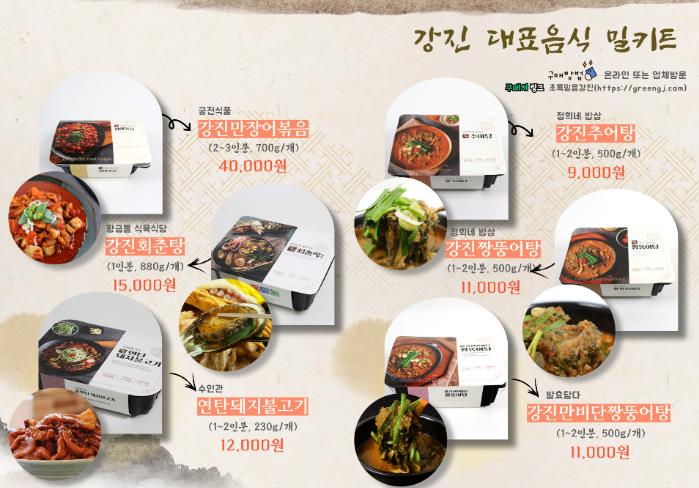 강진 대표음식 밀키트는 총 6종으로 신선한 재료와 각 음식점마다 고유의 레시피를 그대로 담았다.