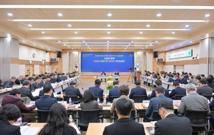[무한뉴스=정민정 기자] 여수시는 지난 15일 시청 회의실에서 정기명 여수시장 주재로 5급 이상 간부 공무원 70여 명이 참석한 가운데 ‘2026년 주요 업무 보고회’를 개최했다.