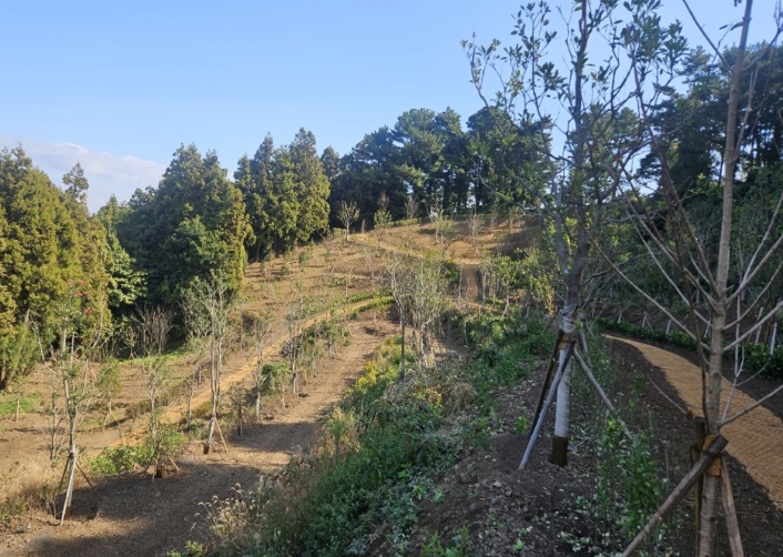 이번 사업은 올해 3월에 착공, 감귤원 폐원지를 정비하여 감탕나무 등 교목 1천2백여 본과 금목서 등 관목 3천5백여 본을 식재하고 산책로 1.2km를 개설하여 시민들이 여가를 즐길 수 있는 공원을 조성했다.