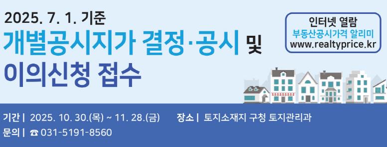 [무한뉴스=양현명 기자] 수원시 영통구는 2025년 7월 1일 기준 개별공시지가를 10월 30일 결정·공시하고, 11월 28일까지 이의신청 기간을 운영한다. 이번에 결정·공시되는 대상은 올해 1월 1일부터 6월 30일까지의 토지 분할, 합병, 지목변경 등 변동 사항이 있는 58필지이다.