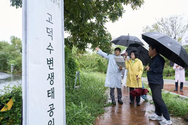 | ▲ 10월 13일 이수희 강동구청장(왼쪽에서 두번째)이 고덕수변생태공원 현장을 점검하고 있다 |