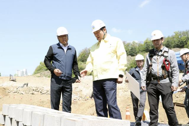 | ▲ 최대호 안양시장이 지난 5월 7일 오전 동안구 비산동 일원 비산포일통합정수장 현대화사업 현장을 방문해 진행상황에 대한 브리핑을 받고있다 |