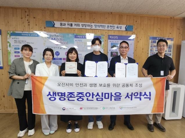 | ▲ 오산시정신건강복지센터, 운천중학교와 생명존중안심마을 서약 진행 |