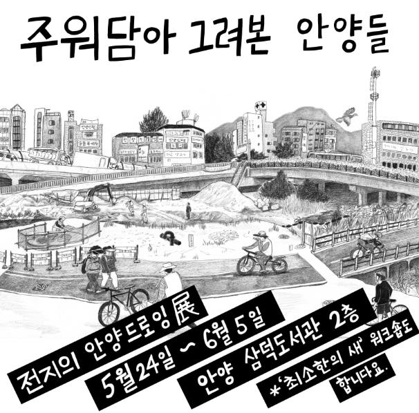 그 첫 순서로 ‘전지’ 작가의 전시 ‘주워담아 그려 본 안양들’이 오는 6월 5일까지 삼덕도서관 2층 전시실에서 개최된다.
