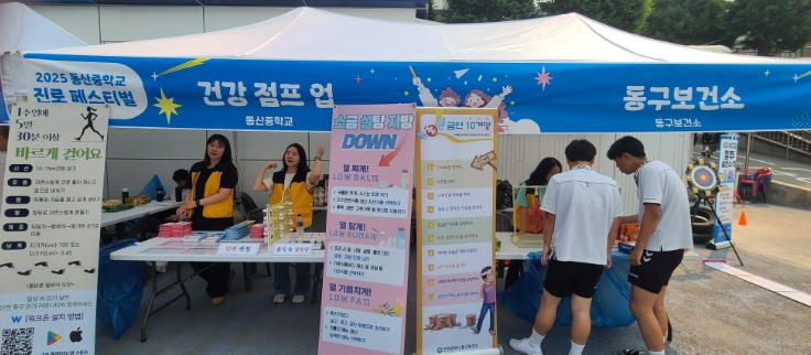 동구보건소는 건강체험관을 통해 ▲흡연 폐 모형 관찰을 통한 흡연의 폐해 교육 ▲가상음주체험(음주고글)을 통한 고위험 음주 예방교육 ▲악력 등 기초체력 측정 및 운동 상담 ▲설탕, 소금양 탁상패널을 이용한 영양상담 교육 ▲보건소 금연 및 건강생활실천 사업 안내를 위한 홍보물 및 리플릿 제공 등 다방면으로 건강 서비스를 제공했다.