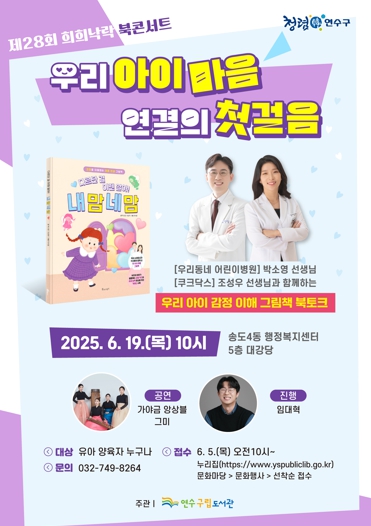 ‘제28회 희희낙락 북콘서트’는 관심 있는 연수구민 누구나 참여할 수 있으며 5일 10시부터 연수구립도서관 누리집을 통해 신청할 수 있다.