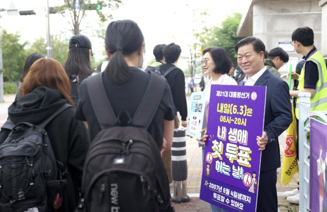이날 캠페인에는 박승원 광명시장이 직접 참여해 제21대 대통령선거로 생애 첫 선거를 경험하는 새내기 유권자들의 투표 참여를 장려하고 민주주의의 의미를 알렸다.