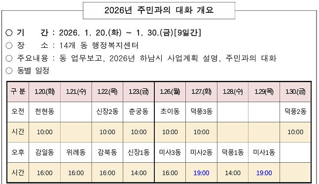 | ▲ 2026년 하남시 주민과의 대화 일정 |