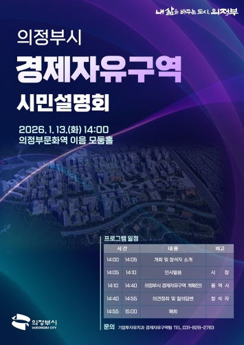 [무한뉴스=정승훈 기자] 의정부시는 1월 13일 의정부문화역 이음에서 경제자유구역 지정 추진과 관련한 시민설명회를 개최한다.