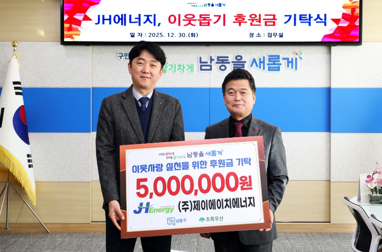 [무한뉴스=정승훈 기자] 인천시 남동구는 제이에이치에너지로부터 취약계층 아동 지원을 위한 ‘아이리더 사업’에 후원금 500만 원을 기탁받았다고 5일 전했다.