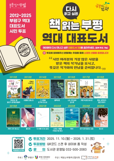 투표 대상은 역대 부평구 대표도서 14권이며, 도서관은 가장 많은 표를 얻은 상위 3권의 도서를 선정할 계획이다.