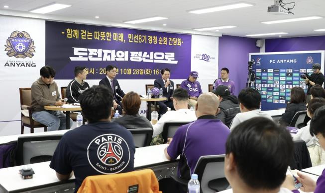 이날 간담회에는 FC안양 관계자와 서포터즈, 유소년 선수 학부모 등 50여 명이 참석해 구단의 성과와 유소년 축구 발전 방안을 함께 논의했다.